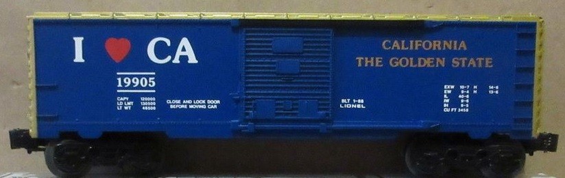 LIONEL 19905 I LOVE CALIFORNIA BOXCAR