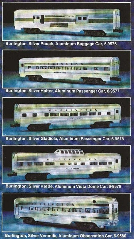 LIONEL 6-9576 THRU 9580 WITH 9588 BURLINGTON THE TEXAS ZEPHYR PASSENGER CAR SET